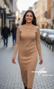 فستان تريكو بتصميم عصري يجمع بين الراحة والأناقة، مصنوع من خامة تريكو ناعمة ومرنة تناسب الحركة واللبس اليومي. مزود بإكسسوارات جولد راقية تضيف لمسة فخامة مميزة للتصميم. يتميز بقصّة انسيابية تناسب مختلف الأجسام، ويمكن تنسيقه بسهولة مع كعب أو بوت لإطلالة كاجوال شيك أو مسائية بسيطة.
